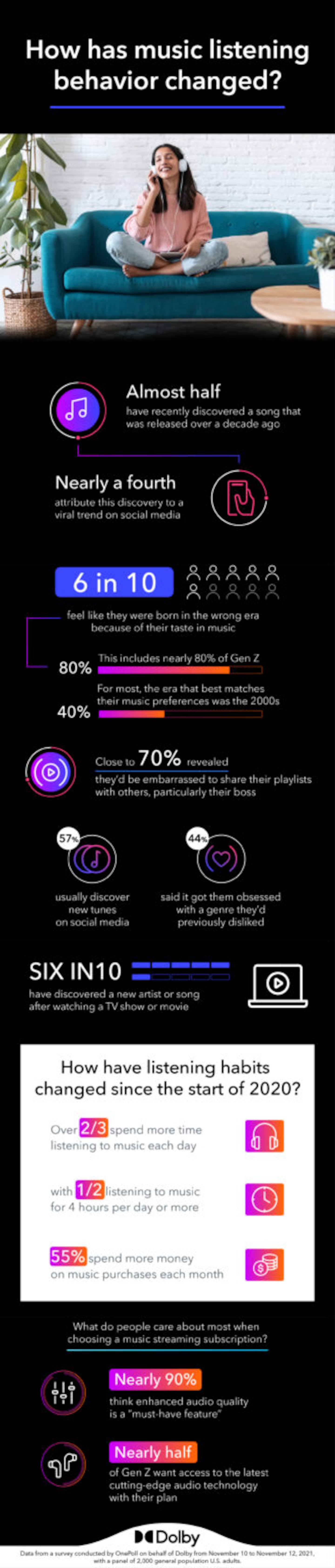 “Songs of past eras are seeing a revival as more Americans are discovering, or rediscovering, these iconic classics for the first time. This includes Gen Z, who have shown a keen interest in music of past eras,” said John Couling, Senior Vice President of Entertainment at Dolby Laboratories. “This is a powerful phenomenon that we believe will have a lasting influence over the listening preferences of many Americans.”