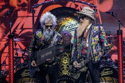 ZZ Top Perform At Viejas Casino ALPINE, CALIFORNIA - NOVEMBER 02: Elwood Francis (L) and Billy Gibbons of ZZ Top perform on stage at Viejas Casino & Resort on November 02, 2025 in Alpine, California. (Photo by Daniel Knighton/Getty Images) (Daniel Knighton/Getty Images)