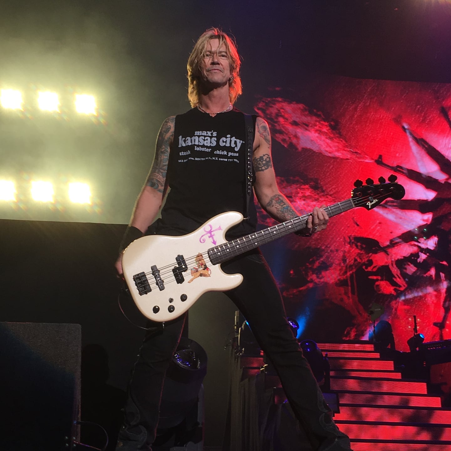Today in 1964 Michael Andrew McKagan was born. You may recognize him as Guns N’ Roses bassist Duff McKagan. I took the picture of Duff below during the “Not In THis Lifetime” tour at Madison Square Garden. The pick you see in the pictures below was one Duff threw to me from the stage at the show. I told him I would trade him one of my picks for one of his. He never did wait for my pick ha. Happy Birthday Duff!