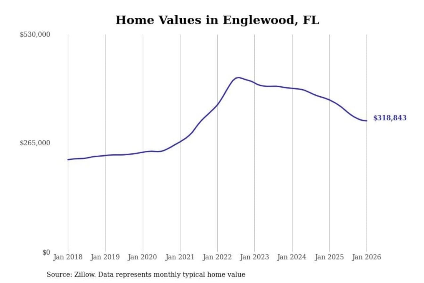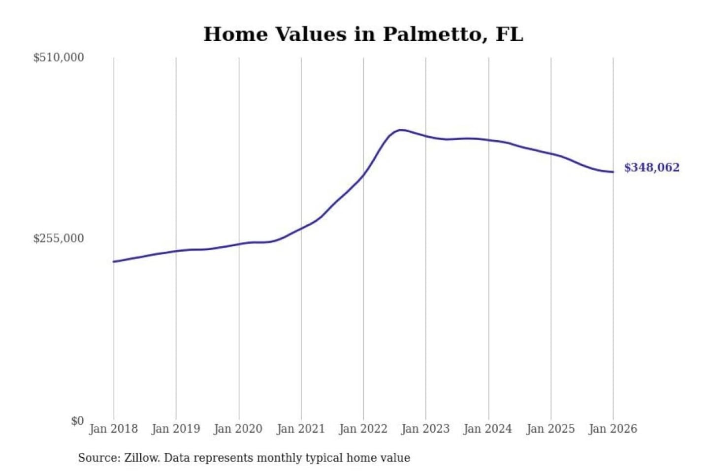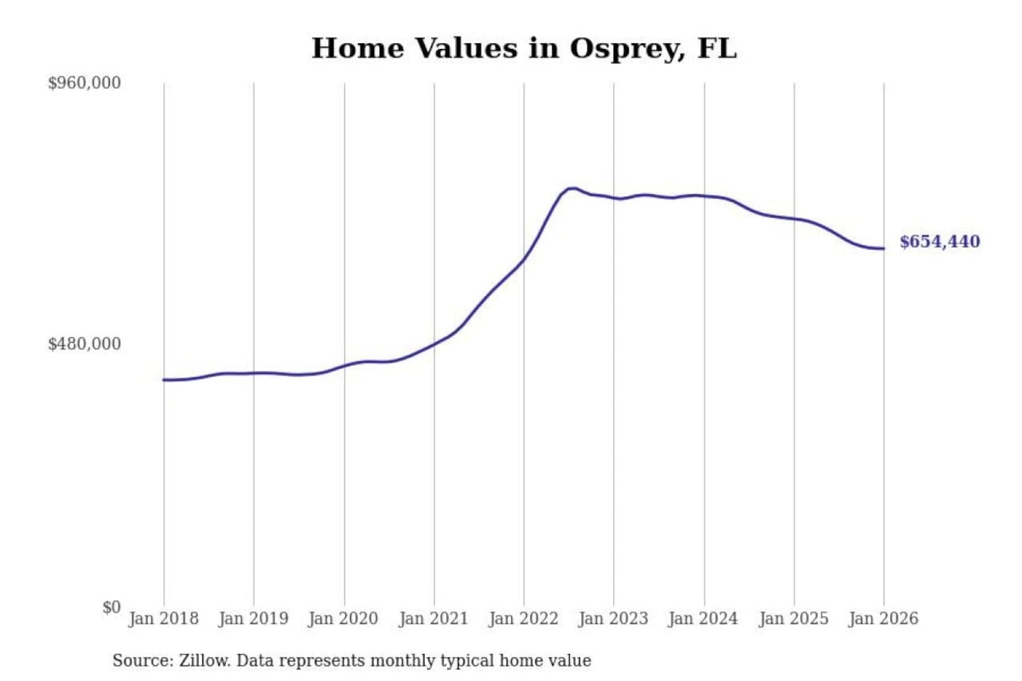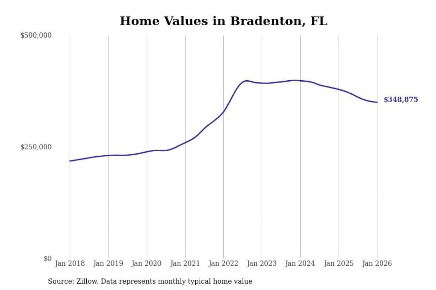 Stacker compiled a list of cities with the most expensive homes in the North Port-Sarasota-Bradenton, FL metro area using data from Zillow. Charts show the monthly typical home value since January 2018.