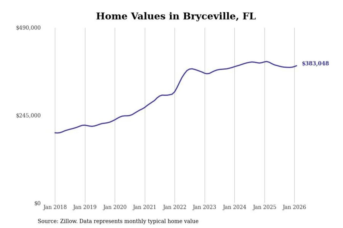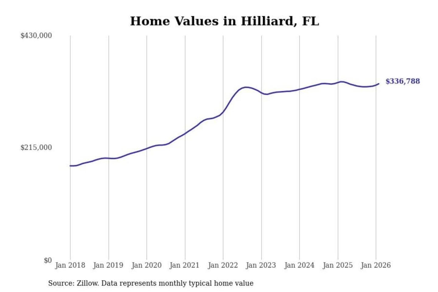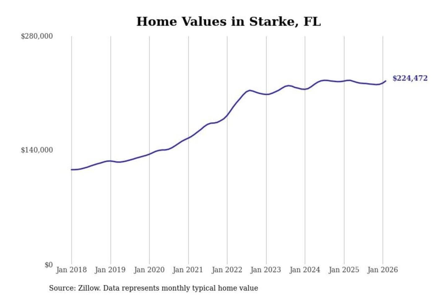 Stacker compiled a list of cities with the most expensive homes in the Jacksonville, FL metro area using data from Zillow. Charts show the monthly typical home value since January 2018.