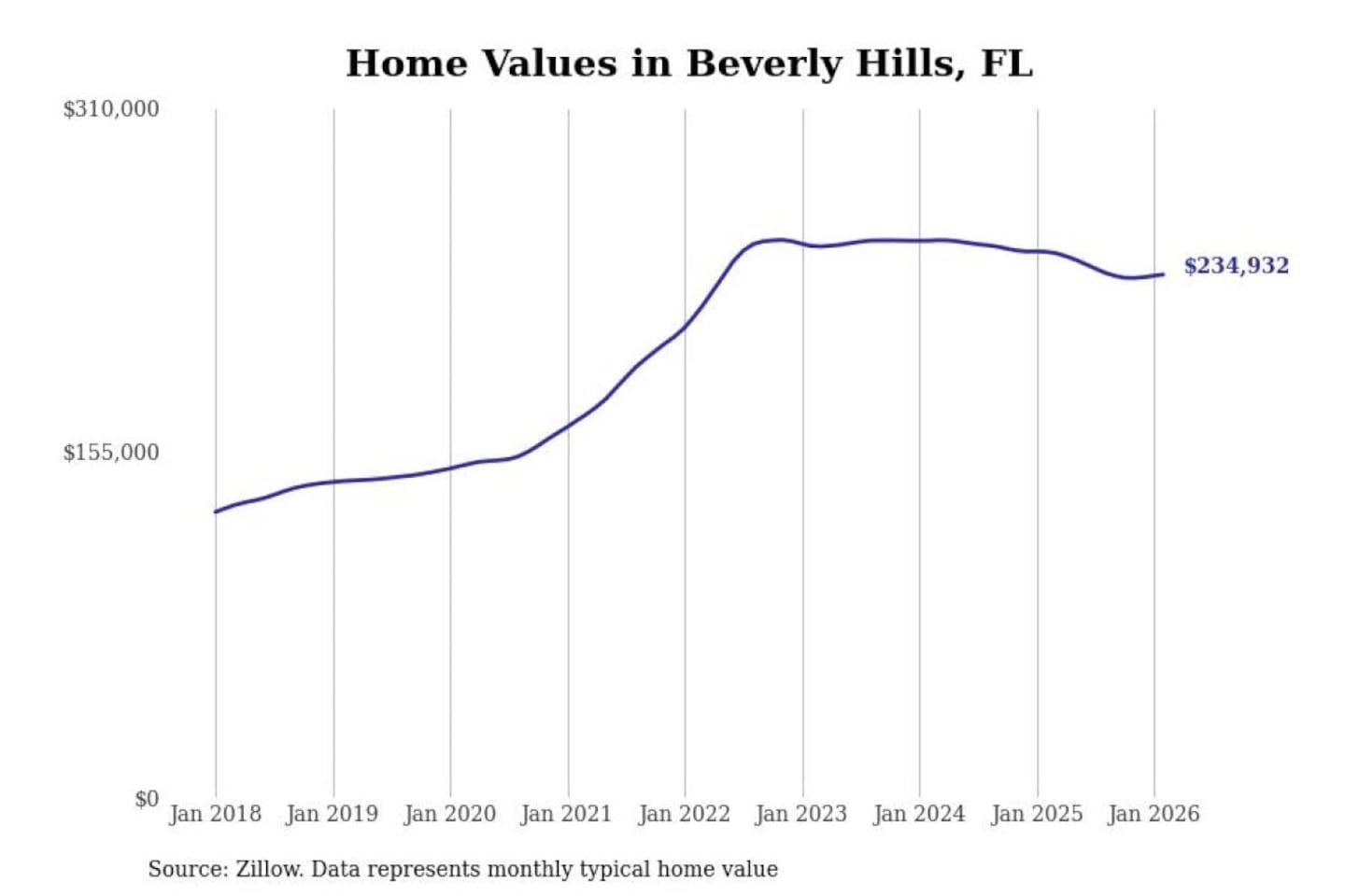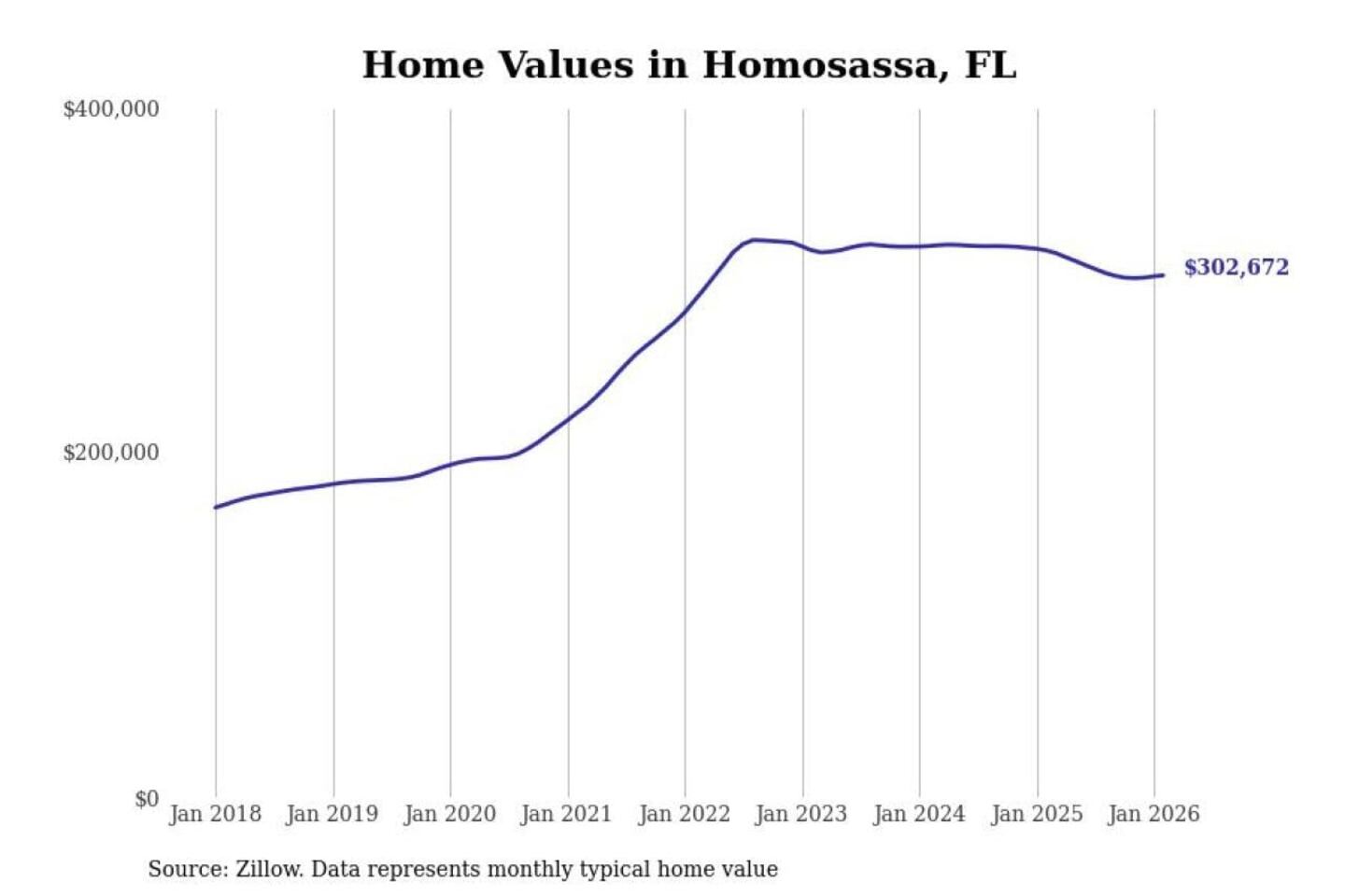 Cities with the fastest-growing home prices in the Homosassa Springs metro area