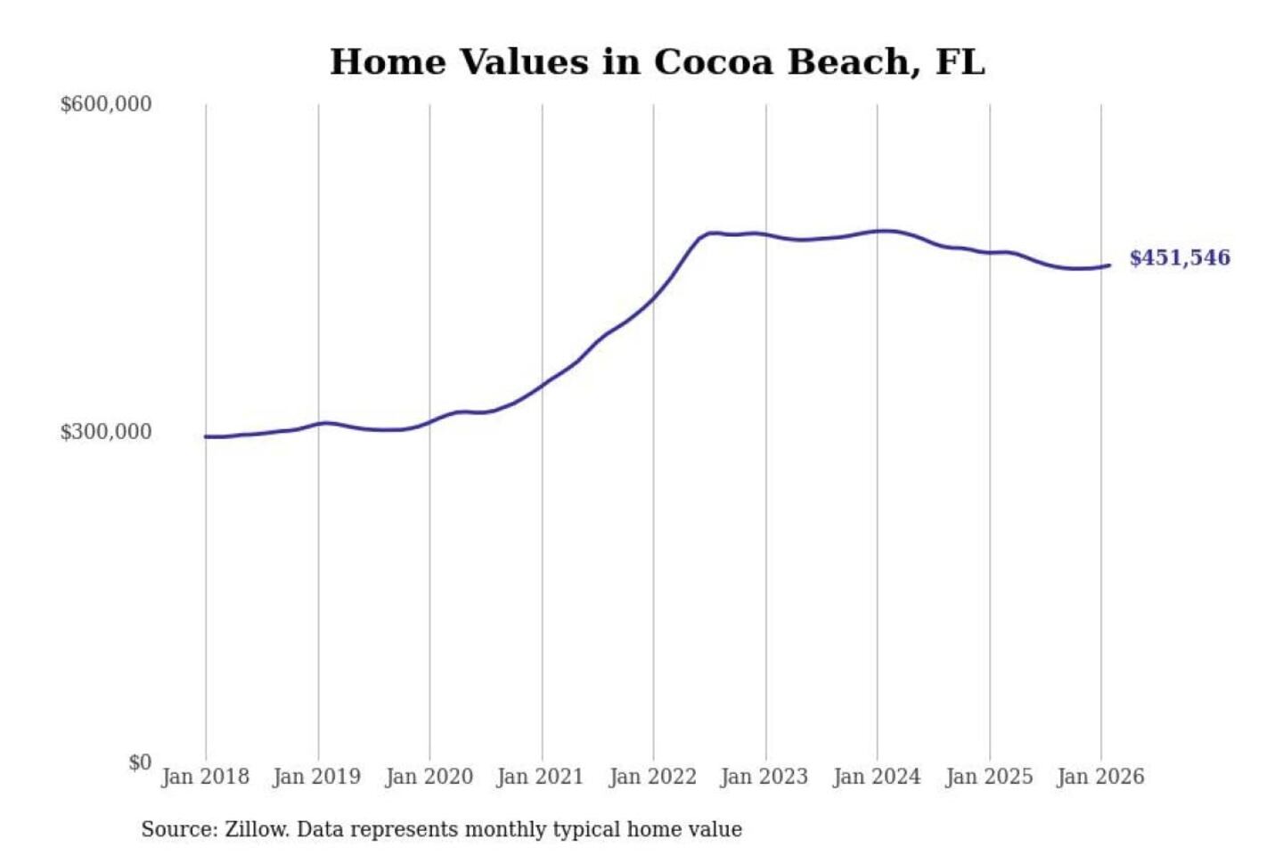 Stacker compiled a list of cities with the most expensive homes in the Palm Bay-Melbourne-Titusville, FL metro area using data from Zillow. Charts show the monthly typical home value since January 2018.