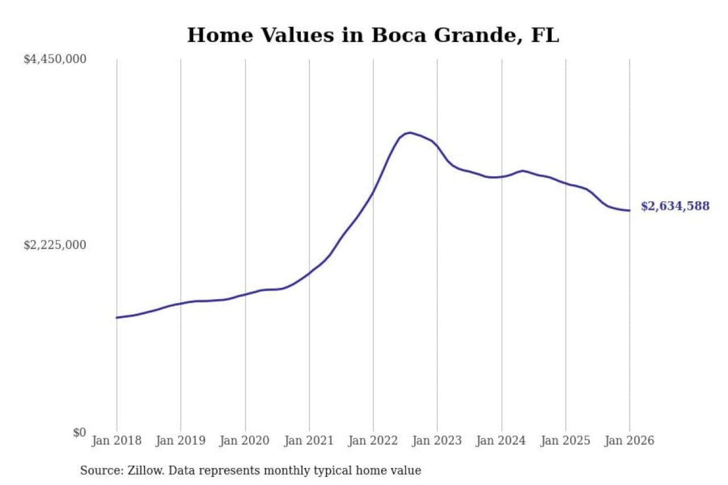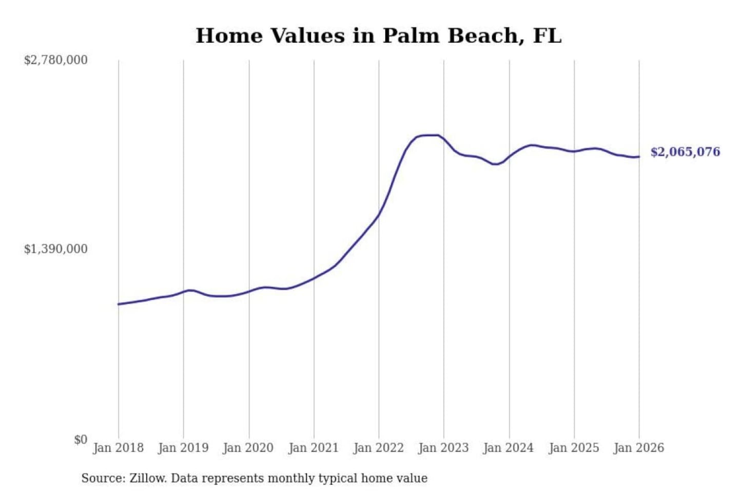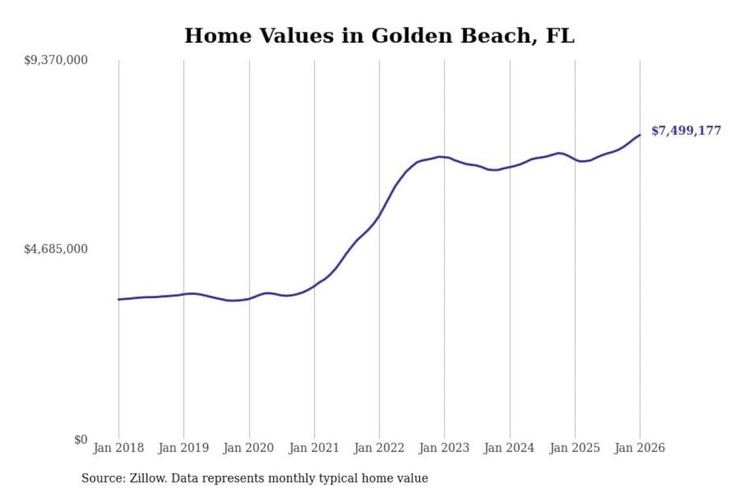Stacker compiled a list of cities with the most expensive homes in Florida using data from Zillow. Cities are ranked by the Zillow Home Values Index for all homes as of January 2026. The charts in this story were created automatically using Matplotlib.