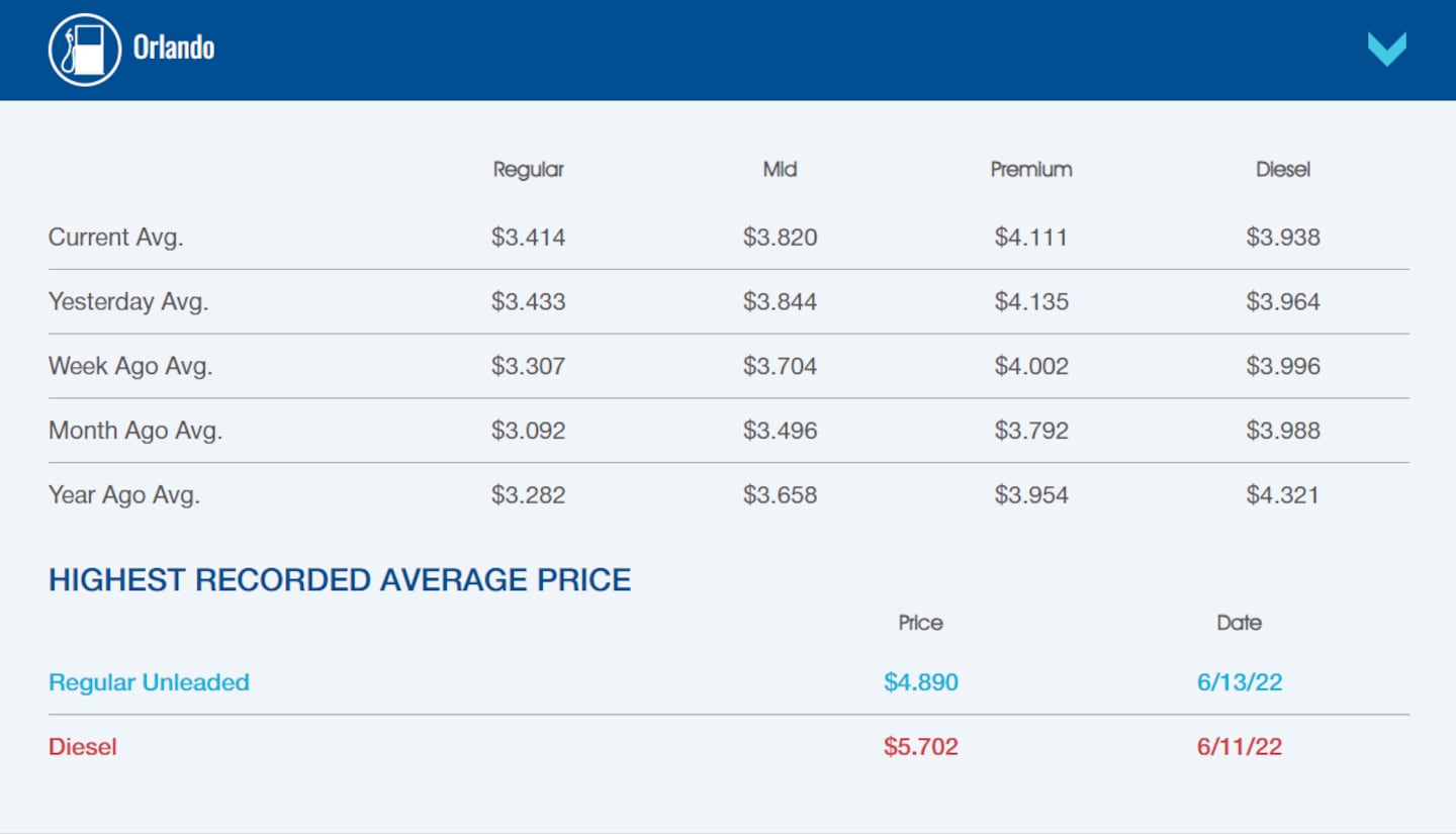 On Sunday, March 10th, gas prices in Florida fell just three cents to move the state average to $3.43 per gallon.