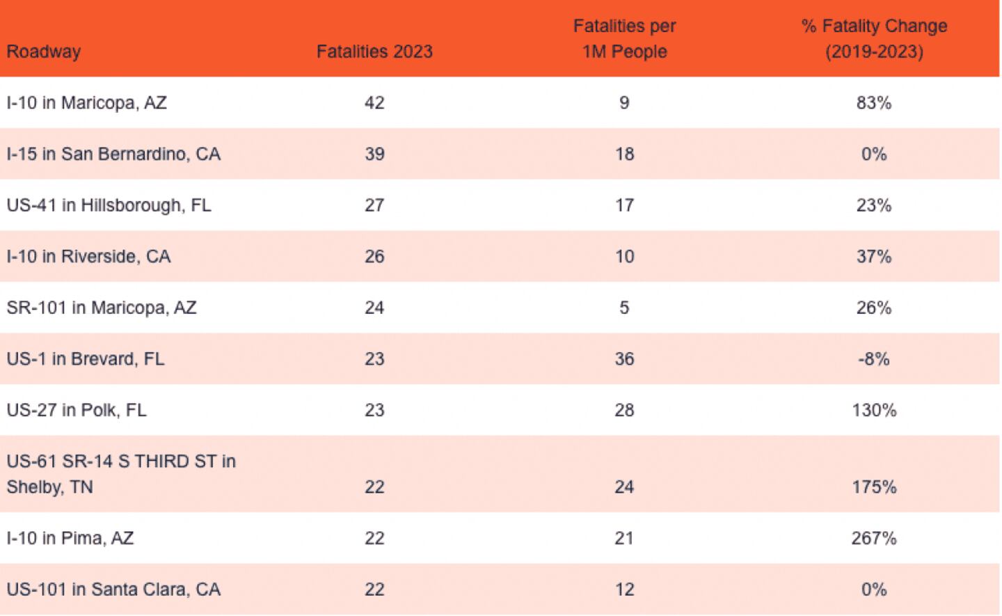 While the most dangerous roads are in large urban areas, there is little correlation between a county’s size and the number of road fatalities—indicating that road design and driving habits are important factors.