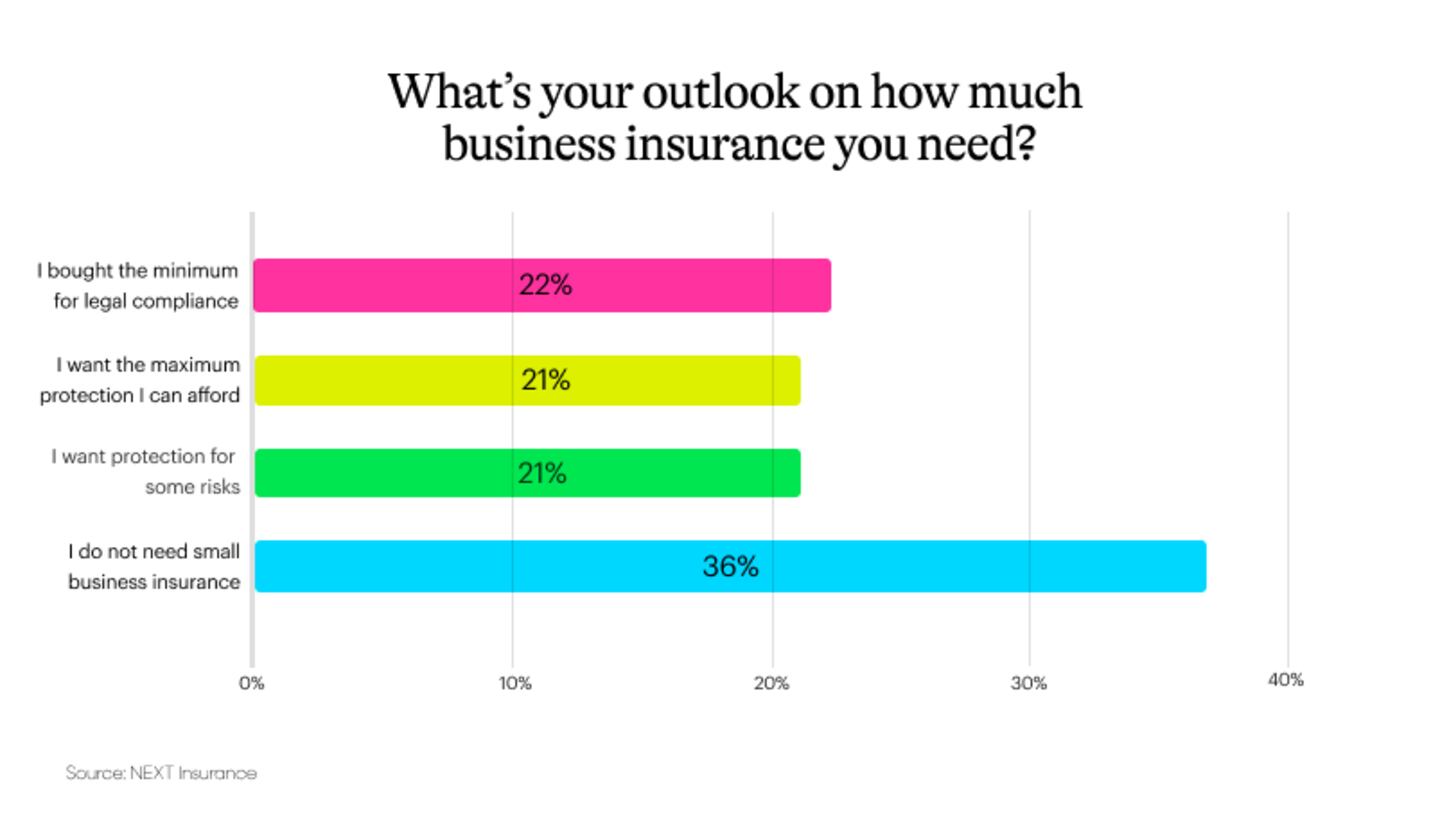 Our most recent data shows that 36% of respondents feel small business insurance is unnecessary, highlighting insufficient awareness of risks and coverage benefits.