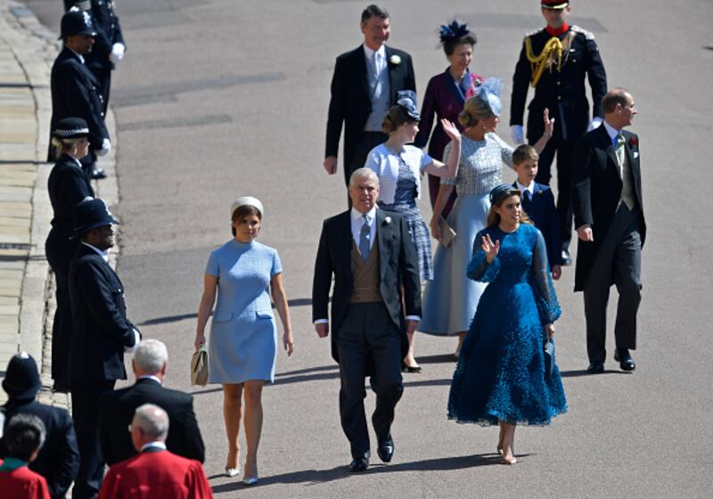 Through the years Members of the British Royal Family lead by Prince Andrew, Duke of York (C front) and his daughters Princesses Eugenie or York (L) and Beatrice (R) arrive at St George's Chapel at Windsor Castle before the wedding of Prince Harry to Meghan Markle on May 19, 2018 in Windsor, England. (Photo by Toby Melville- WPA Pool/Getty Images) (WPA Pool/Getty Images)