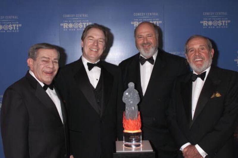 Photos: Freddie Roman through the years 2000: Freddie Roman (left), Michael McKean, Rob Reiner and Alan Kingr at the Roast held at the New York Friars Club in honor of Rob Reiner on Oct. 6, 2000. The Roast was presented by Comedy Central. (Nick Elgar/ImageDirect via Getty Images)