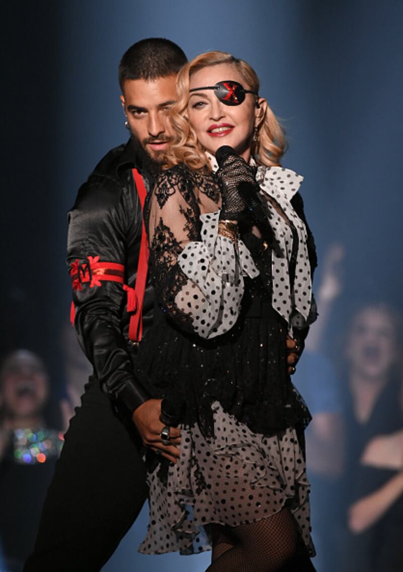 Photos: Madonna through the years 2019: Maluma and Madonna perform onstage during the 2019 Billboard Music Awards at MGM Grand Garden Arena on May 1, 2019, in Las Vegas. (Kevin Winter/Getty Images for dcp)