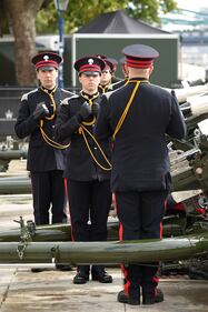 Photos: Queen Elizabeth II tributes continue across UK as royals, public grieve Members of the 4th Regiment Royal Artillery fire a 96-gun salute at 1pm in tribute to the late Queen Elizabeth II on September 9, 2022, in York, England. (Ian Forsyth/Getty Images)