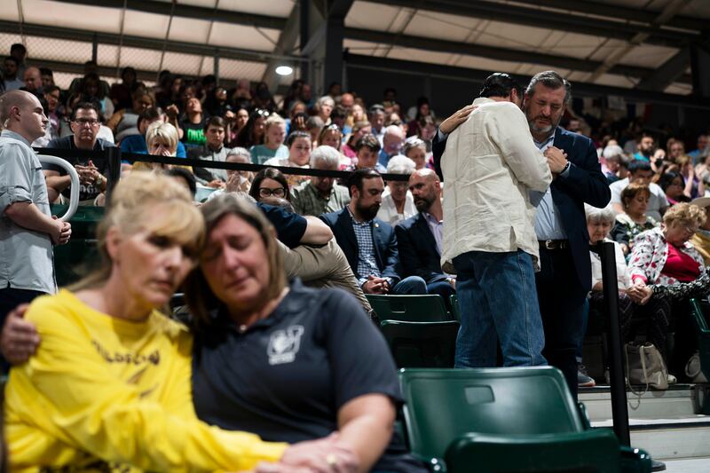 “You may cry because our hearts are broken,” Pastor Tony Gruben told the audience, according to KHOU-TV.