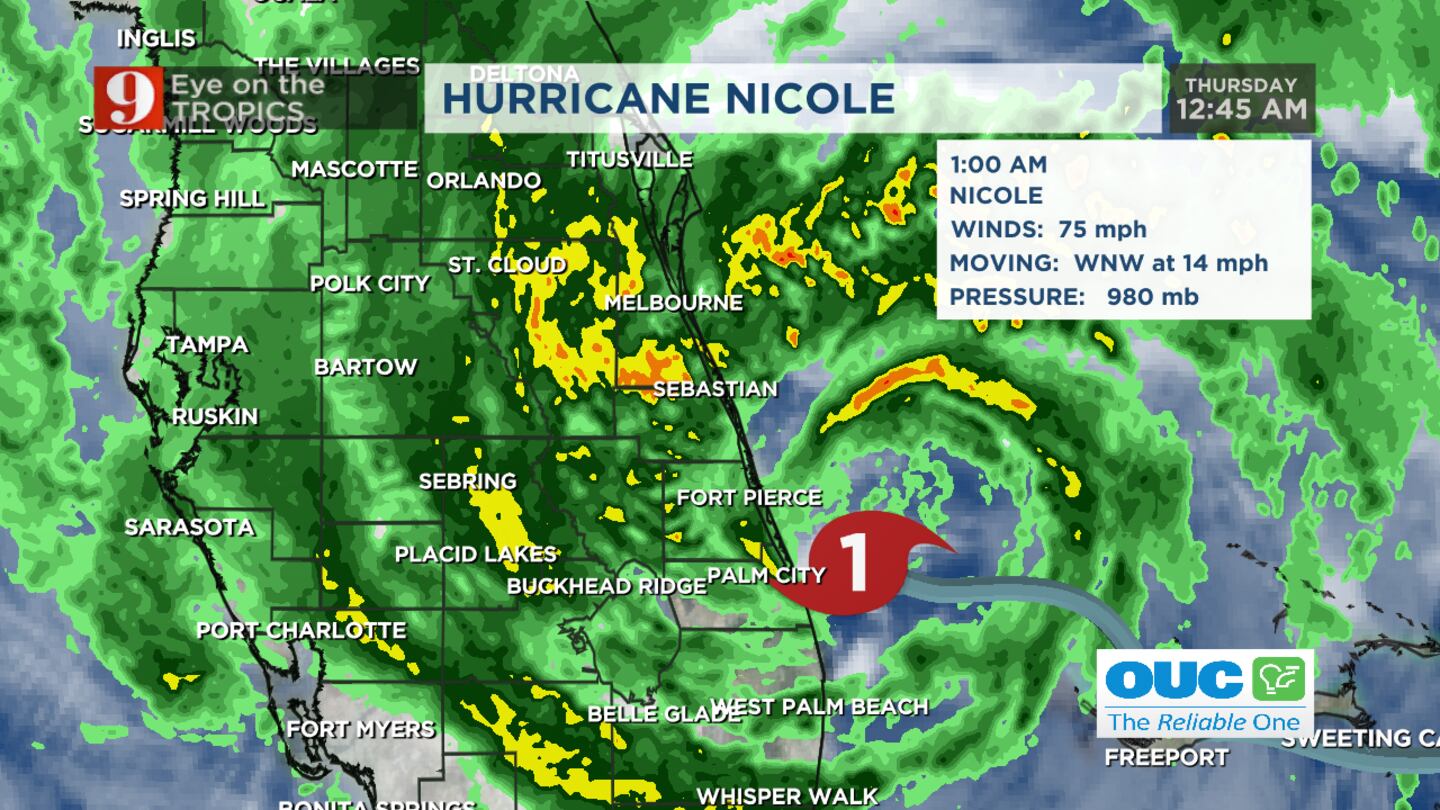 Hurricane Nicole is likely to make landfall along the east coast of Florida within the next couple of hours.